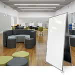 - 2 double sided – 1200x900mm whiteboards, so a total of four writing surfaces. 2 surfaces are Porcelain and 2 surfaces are commercial magnetic